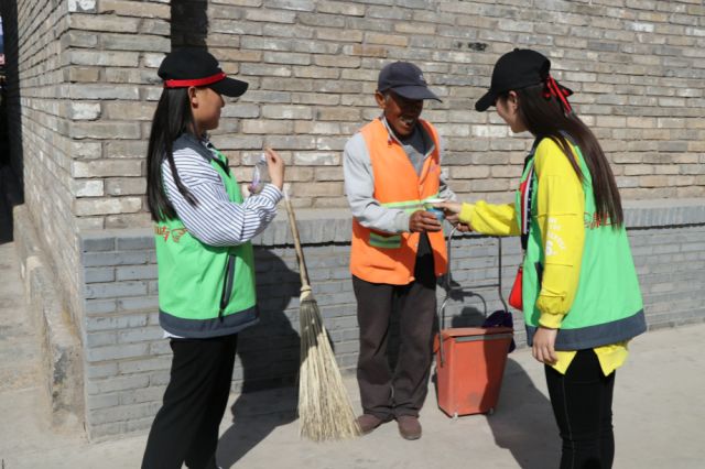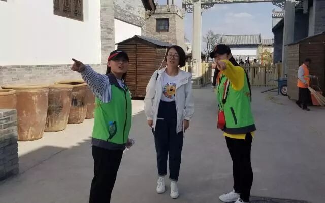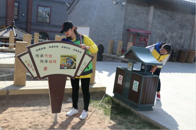 志愿者为游客发放宣传品