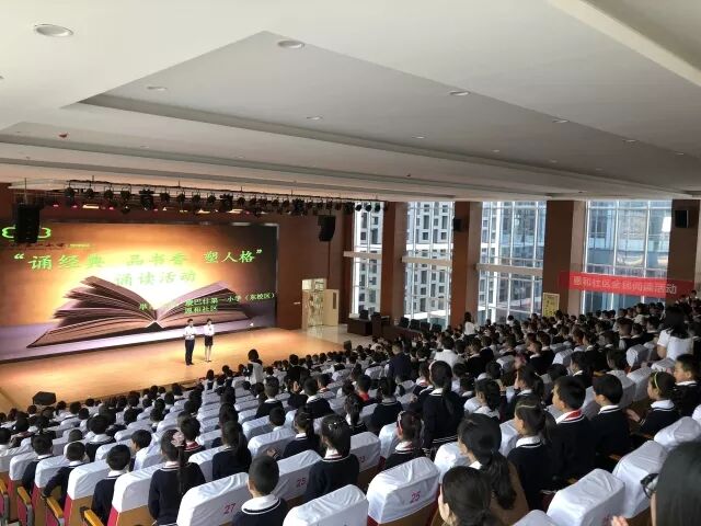 为进一步培育和践行社会主义核心价值观,深入推进我区未成年人思想道德建设工作,弘扬中华传统美德,2018年5月5日,青春山街道恩和社区联合康巴什第一小学(东校区)开展“诵经典 品书香 塑人格”诵读活动。 活动分为教师、家长、学生朗读音频节选,家长诵读,居民诵读,教师诵读,学生诵读五个环节。现场观众认真倾听,不时发出热烈的掌声,精彩的诵读活动激发了学生强烈的学习热情。 学生代表朗诵(图:张欣谊)