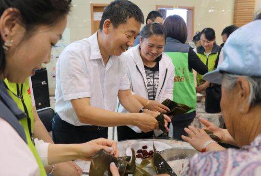 老人们游戏环节活动现场 活动结束后,道德模范、身边好人、志愿者将包好的粽子,牛奶、鸡蛋、绿豆等送到100户困难老人、孤寡老人家中。慰问组嘘寒问暖、积极了解老人们的身体状况、生活环境和生活条件,并向他们送去了节日的问候,让辖区内困难老人过上一个祥和、快乐的端午节。