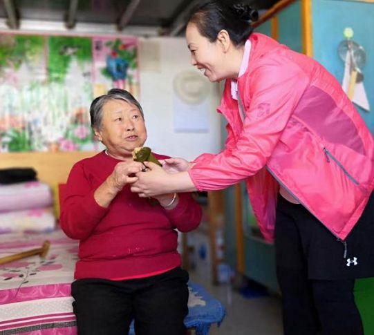 身边好人李军梅陪孤寡老人过节  志愿者陪老人过节